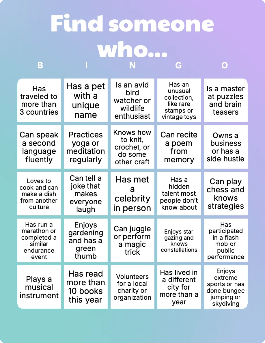 Customize and download thousands of printable 5x5 bingo cards using our card generator, fitting the traditional bingo layout.