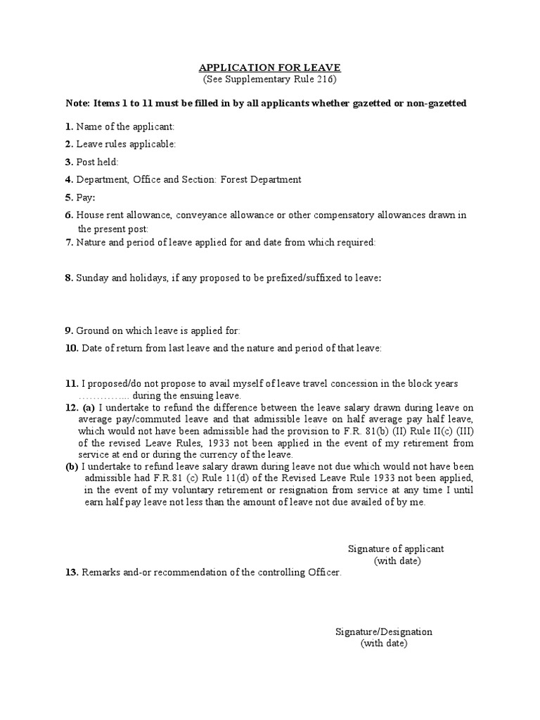 Leave Application Form PDF
